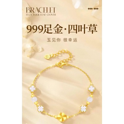 Gold four-leaf clover bracelet
