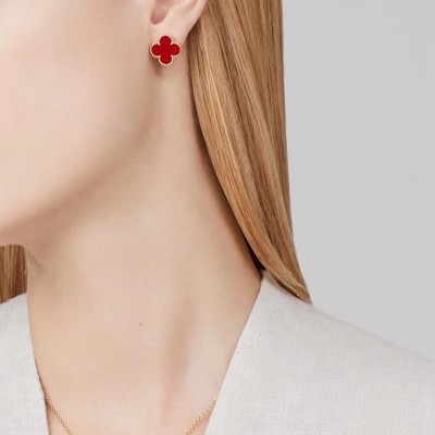 Van Cleef & Arpels Four-Leaf Clover Alhambra Series K Gold Red Agate Earrings